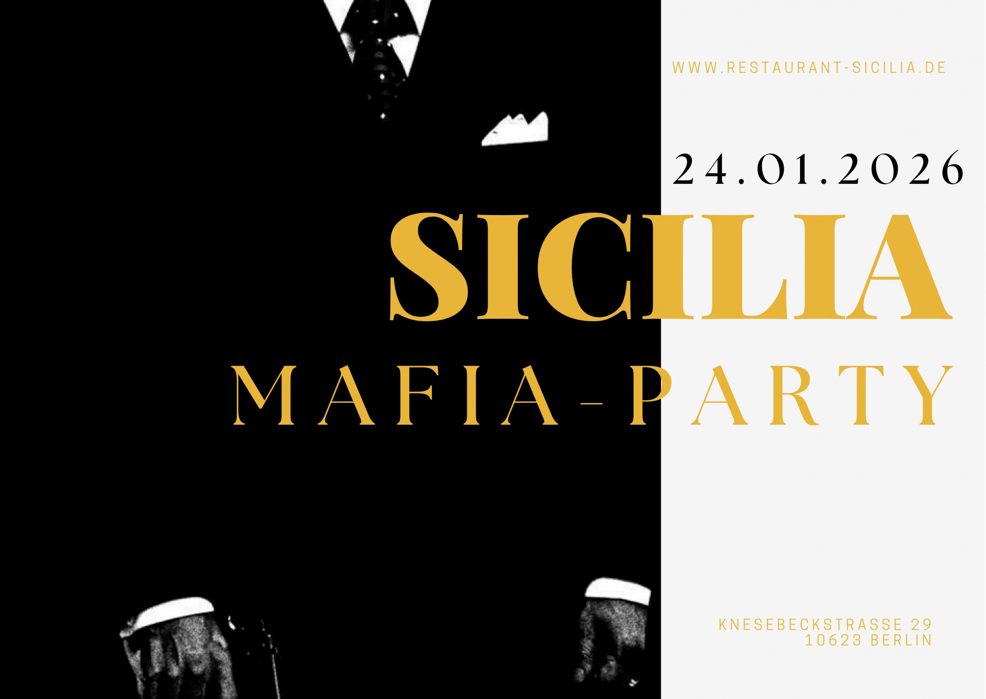 wir machen euch ein Angebot das ihr nicht ausschlagen könnt. Am 24. Januar 2026 ab 18:00 Uhr findet wieder unsere legendäre Mafia Party statt. Mafia Night mit Aperitivo, 4-Gänge-Menü